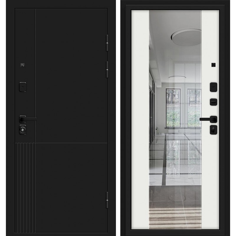Optim Z-2 Нео Зеркало Муар черный Белый, Входная дверь Браво Нео с зеркалом, дверь нео с зеркалом